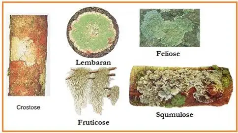 Bentuk ThallusKrustosa, Foliosa, atau Frutikosa